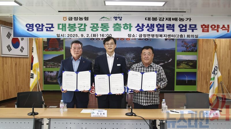 영암군(군수 우승희)은 2일 금정면행정복지센터에서 대봉감 재배 농업인, 금정농협 관계자 등이 참석한 가운데 ‘대봉감 공동 출하 상생협력 업무 협약식’을 열었다.