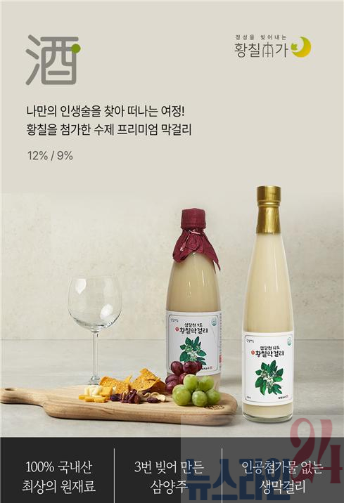 ‘섬달천9도생황칠막걸리’는 인공 감미료를 사용하지 않고 쌀과 황칠을 주원료로 해 세 차례 빚은 뒤 90일간 자연 숙성한 삼양주로, 황칠의 쌉싸름함과 쌀의 깊은 단맛이 조화를 이루는 것이 특징이다.