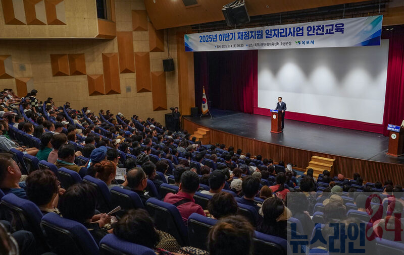 목포시는 지난 4일, 2025년 하반기 재정지원 일자리사업(지역공동체·공공근로) 참여자와 감독공무원 등 450여 명을 대상으로 안전교육을 실시했다.