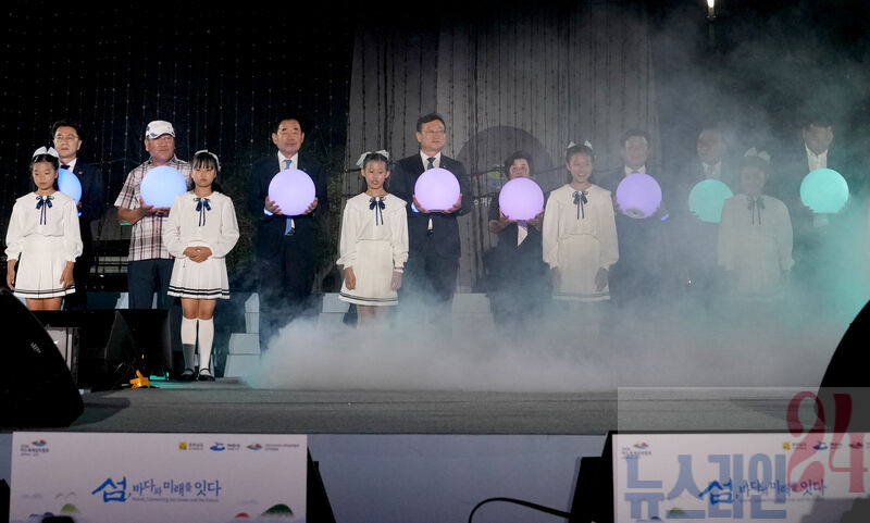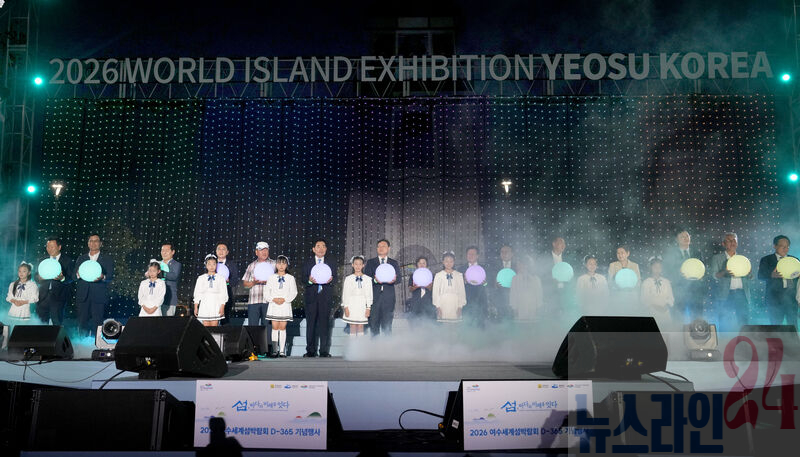 명창환 전라남도 행정부지사가 5일 오후 여수세계박람회장 해양광장에서 열린 ‘2026 여수세계섬박람회 D-365 기념행사’에서 주요 내빈들과 성공개최를 기원하는 퍼포먼스를 하고 있다.