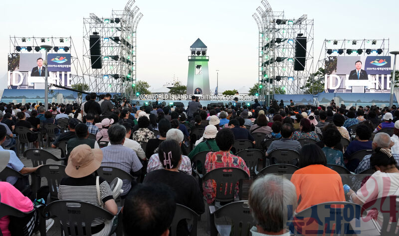 명창환 전라남도 행정부지사가 5일 오후 여수세계박람회장 해양광장에서 열린 ‘2026 여수세계섬박람회 D-365 기념행사’에서 인사말을 하고 있다.