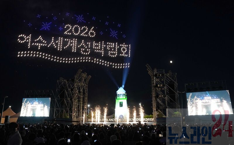 5일 오후 여수세계박람회장 해양광장에서 열린 ‘2026 여수세계섬박람회 D-365 기념행사’에서 개막 D-365를 축하하는 드론쇼가 펼쳐지고 있다.