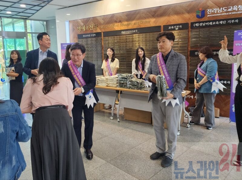김대중 교육감은 9월 5일 청사 로비에서 열린 ‘양성평등 퀴즈풀이’에 참여하고 ‘일하는 여성’ 전시를 관람했다. 김 교육감은 “양성평등은 교육이 지향해야 할 기본 가치”라며 “학교가 차별 없는 배움터로 자리 잡을 수 있도록 적극 지원하겠다”고 밝혔다.