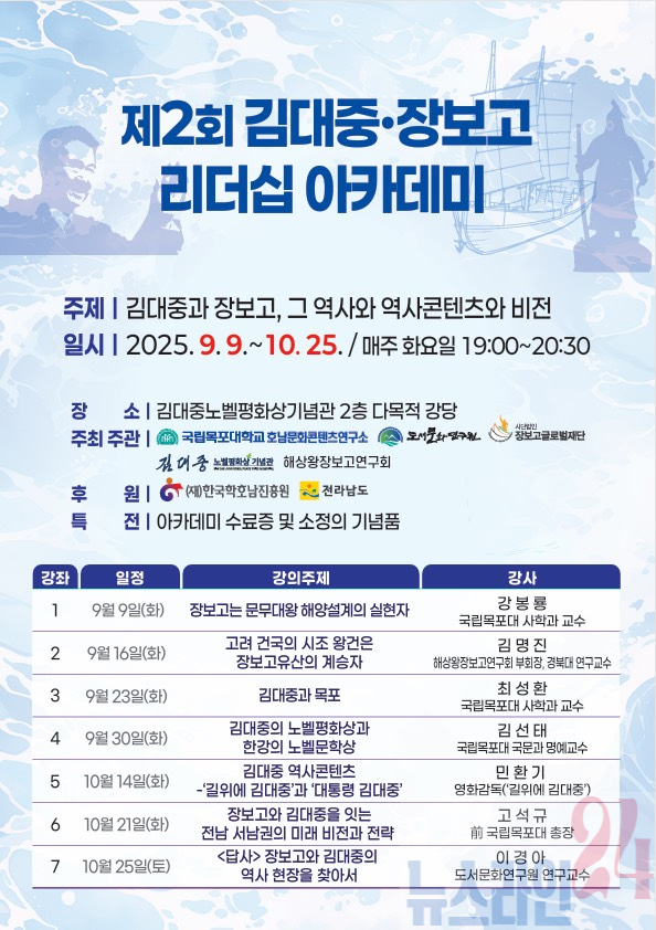 (재)김대중노벨평화상기념관(이사장 김성재)은 오는 9일부터 *‘김대중과 장보고, 그 역사 및 역사콘텐츠와 비전’을 주제로 <2025 김대중·장보고 리더십 아카데미>를 개최한다.