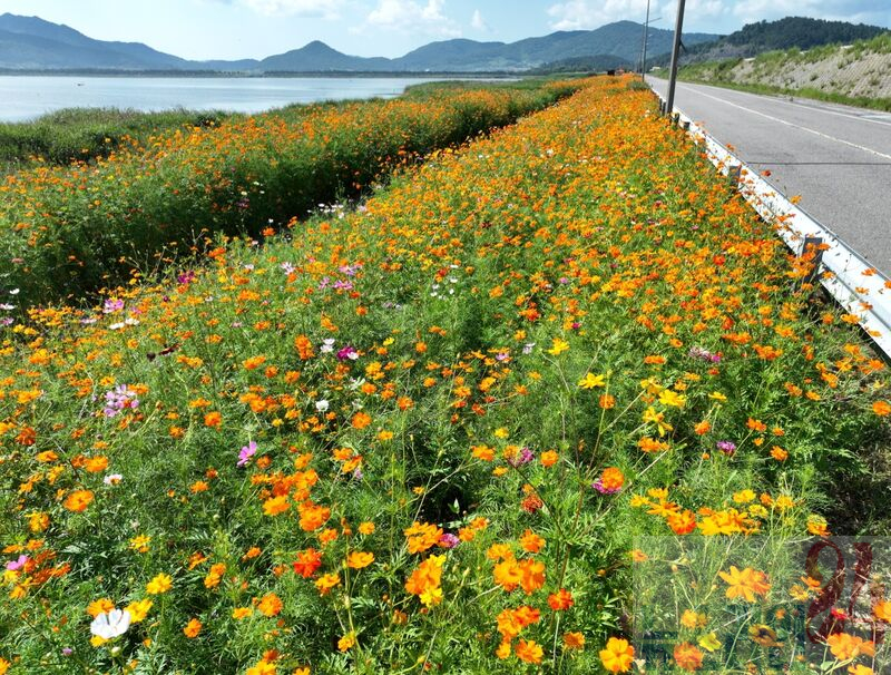 이번에 만개한 꽃은 일반 코스모스, 황화 코스모스, 백일홍과 같은 다채로운 가을꽃들로, 방조제 일원 약 42,000제곱미터(㎡)에 알록달록하게 펼쳐져 방문객들의 눈길을 사로잡고 있다.