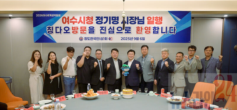정기명 시장은 9월 6일 칭다오 양재경 한인회장과 임원들을 만나 섬박람회의 비전과 참여 방안을 설명했다.정기명 여수시장이 중국 칭다오에서 열린 ‘2025 해양협력발전포럼’에 초청받아 9월 6일부터 2026여수세계섬박람회 참여 독려를 위한 국제 홍보 활동에 본격 돌입했다.
