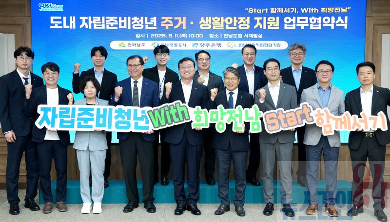 전라남도는 전남개발공사, 광주은행, 전남자립지원전담기관과 11일 도청 서재필실에서 지역 자립준비청년의 주거와 생활 안정을 위한 전국 최초의 통합 주거복지 업무협약을 했다고 밝혔다.