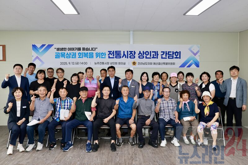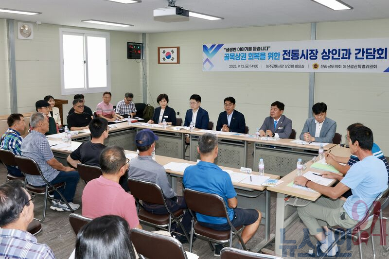 전남도의회 예산결산특별위원회(위원장 류기준, 더불어민주당·화순2)는 지난 9월 12일 화순 능주전통시장 상인회 회의실에서 지역 상인들과 간담회를 열고, 골목상권 회복을 위한 현장 소통에 나섰다.