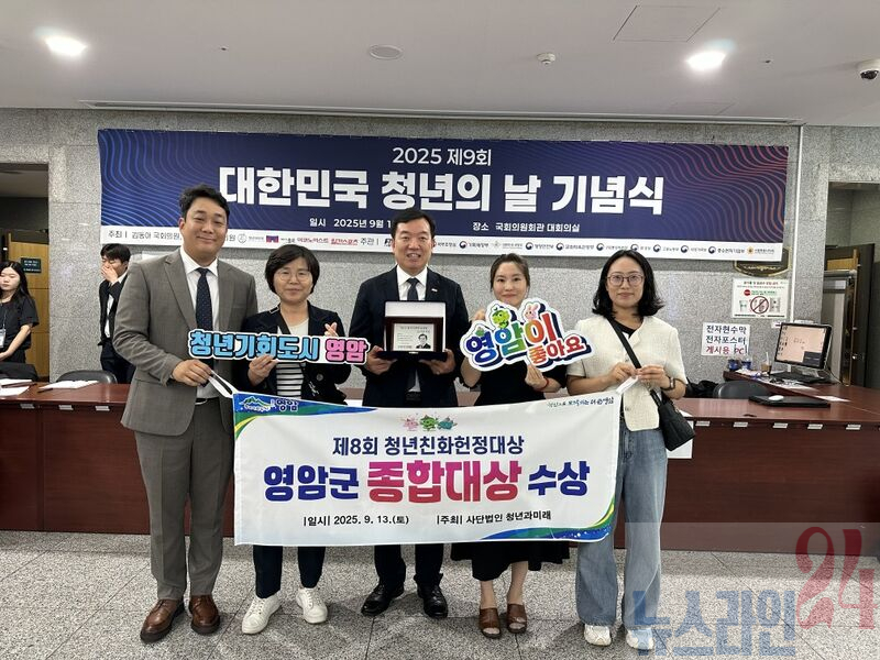 영암군(군수 우승희)이 13일 국회의원회관에서 열린 ‘2025 제9회 대한민국 청년의 날 기념식‘에서 국회사무처 소관 청년단체 사단법인 ‘청년과 미래’ 주관의 ‘제8회 청년친화헌정대상’에서 광주·전남지역 ‘종합대상’을 수상했다.