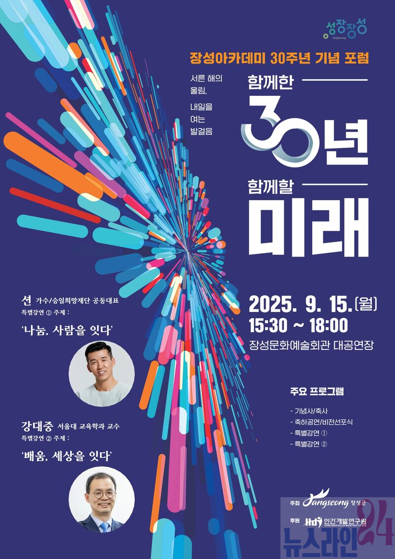 장성군 고유의 사회교육 프로그램 ‘장성아카데미’가 15일 장성문화예술회관 대공연장에서 30주년 기념 포럼을 열었다.