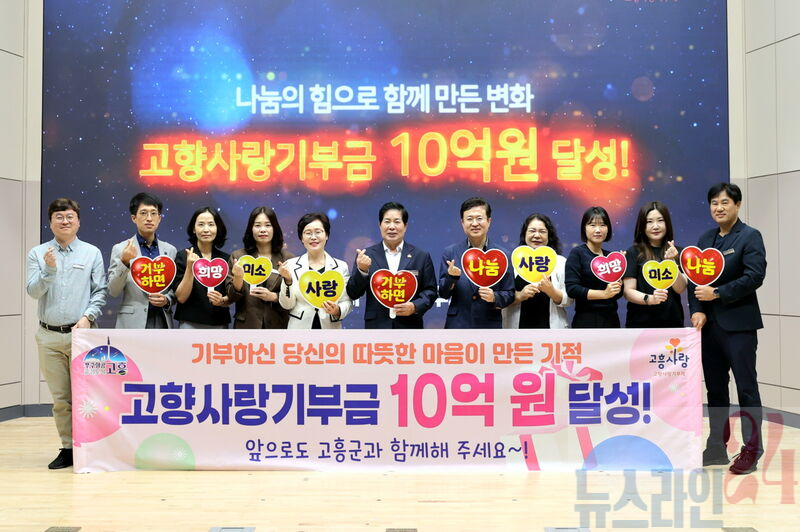 고흥군(군수 공영민)은 올해 초부터 추진한 고향사랑기부금이 9월 18일 기준 누적 10억 원을 돌파했다고 밝혔다. 이는 전라남도 최초 성과로, 전년 같은 기간보다 1.8배 증가한 수치다.