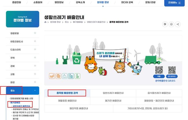 강북구, 홈페이지 내 `품목별 검색` 분리배출 안내 시스템 운영
