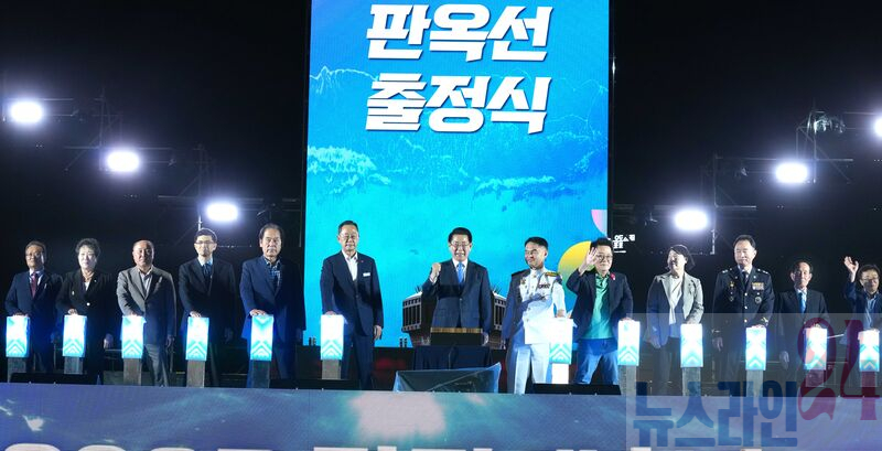 김영록 전라남도지사가 19일 해남 우수영관광지에서 열린 ‘2025 명량대첩축제 개막식’에 참석, 주요내빈들과 기념촬영을 하고 있다.