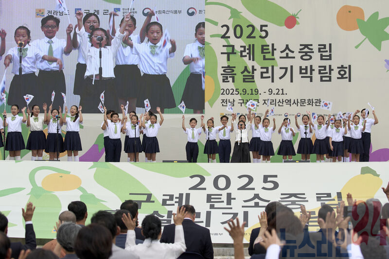 개막식은 ‘흙을 살리고 지구를 구하는 구례’를 주제로 김형석 작곡가와 TBN 어린이합창단의 공연으로 막을 열었고, 이어 탄소중립 실천과 생태농업의 의지를 담은 선언문 발표와 주요 내빈의 개막 퍼포먼스가 진행돼 관람객들의 큰 호응을 얻었다.
