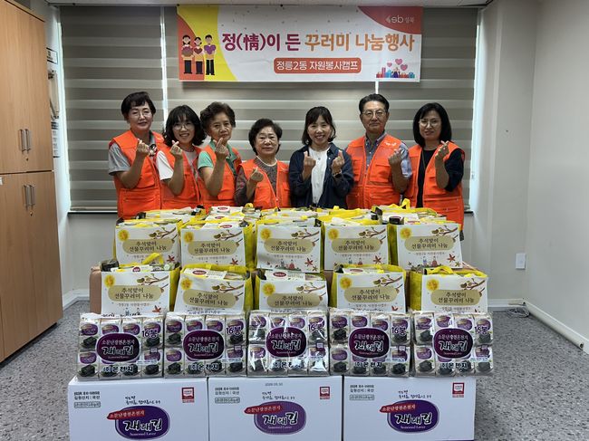 이어 9월 23일 정릉2동 자원봉사캠프는 취약계층 30가구에 햇반, 사골곰탕, 재래김, 율무차 등 8종으로 구성된 ‘추석맞이 식료품 꾸러미’를 직접 포장해 전달했다.