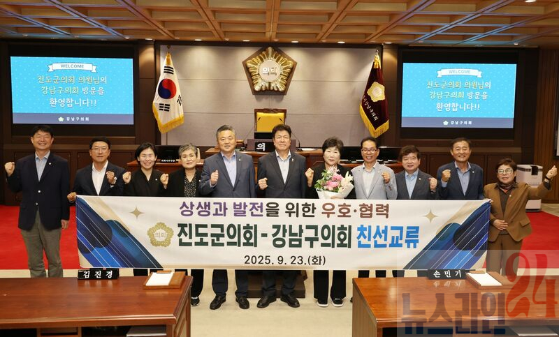 진도군의회(의장 박금례)는 지난 23일에 서울 강남구의회(의장 이호귀)와 자매결연을 맺기 위한 사전 의향서를 교환했으며, 상호 협력과 교류 확대를 다짐하는 뜻깊은 자리를 가졌다고 밝혔다.