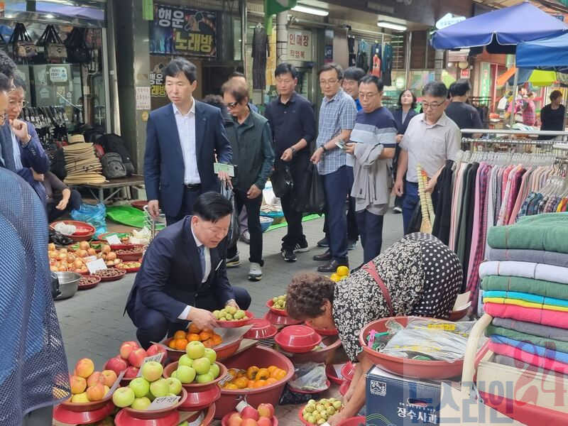 김 위원장은 장터 곳곳을 돌며 상인들과 직접 대화를 나누며 애로사항을 경청하고 격려의 말을 전했다. 그는 “우리 전통시장은 단순히 물건을 사고파는 곳이 아니라 세대와 세대를 이어주는 삶의 이야기와 정(情)이 담긴 공간”이라며 “경제가 함께 살아나기 위해서는 현장을 지키는 분들의 노력이 가장 소중하다”고 강조했다.