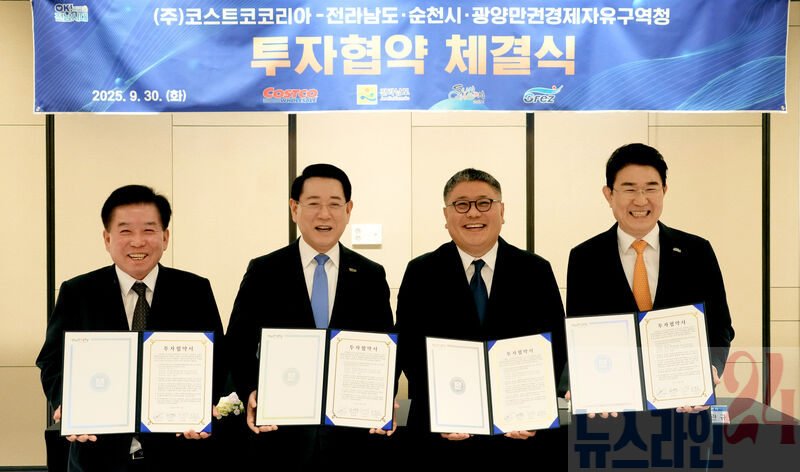 이날 협약식에는 김영록 전남도지사, 조민수 ㈜코스트코코리아 대표, 노관규 순천시장, 구충곤 광양만권경제자유구역청장 등 관계자들이 참석했다.