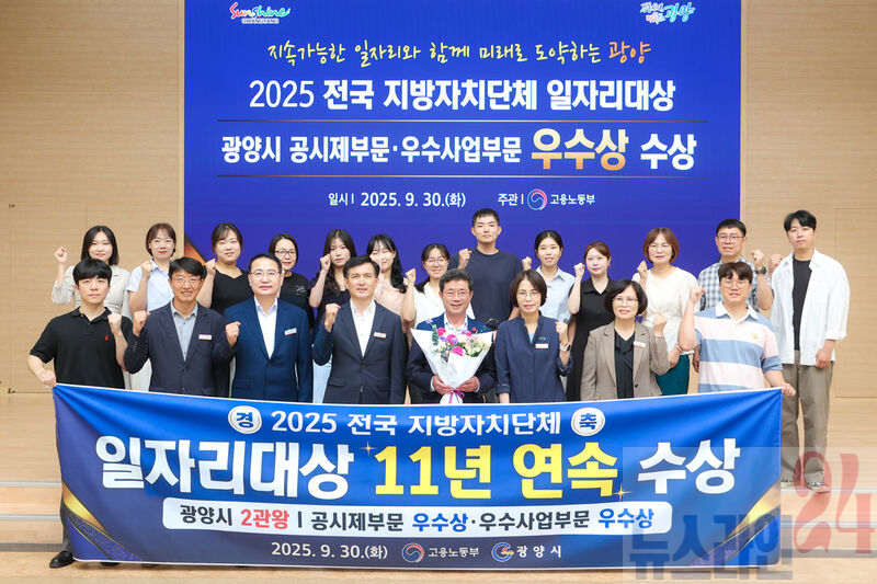 광양시(시장 정인화)는 9월 30일 청주 오스코에서 열린 고용노동부 주관 「2025년 전국 지방자치단체 일자리대상」 시상식에서 공시제 부문과 우수사업 부문 모두 우수상을 수상하며, 2015년부터 11년 연속 수상이라는 값진 성과를 거뒀다고 밝혔다.
