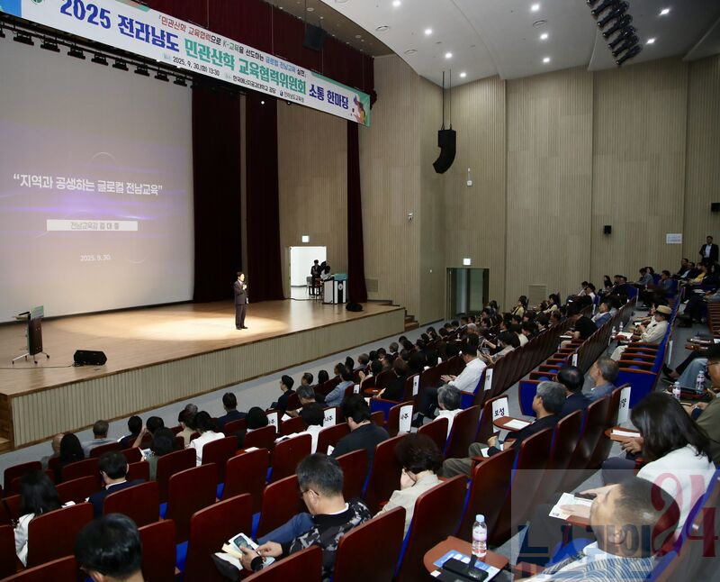 전라남도교육청(교육감 김대중)은 9월 30일(화) 나주 한국에너지공과대학교 강당에서 본청과 22개 교육지원청 민관산학 교육협력위원회 위원 500여 명이 참석한 가운데 ‘2025 민관산학 교육협력위원회 소통한마당’을 개최했다.