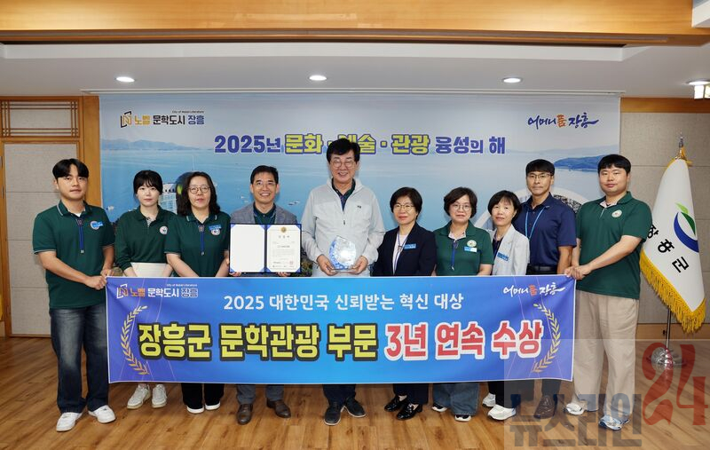 장흥군이 9월 29일 개최한 ‘2025 대한민국 신뢰받는 혁신대상’시상식에서 문학관광 부문 공공혁신 대상을 수상했다고 밝혔다.