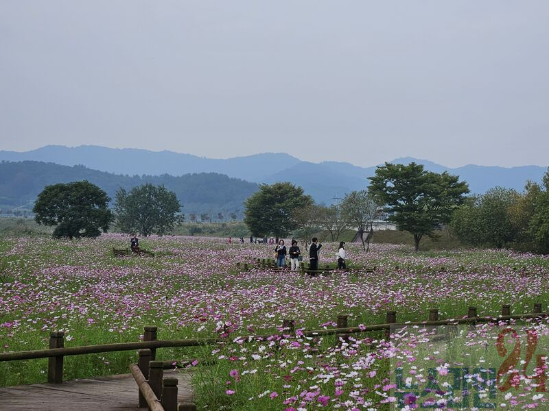 올해는 코스모스 조성 면적을 기존 17,000㎡에서 3배 이상 늘어난 57,000㎡ 규모로 확대했다. 갈대 제거, 꽃씨 파종, 관수시설 설치, 잡초 제거 등 꾸준한 관리 작업에 마을 이장단, 부녀회, 여성단체협의회 등 주민 모두가 힘을 모아 꽃밭을 가꿔왔으며, 모두의 노력이 더해져 방문객들에게 더욱 아름다운 코스모스를 선보일 예정이다.