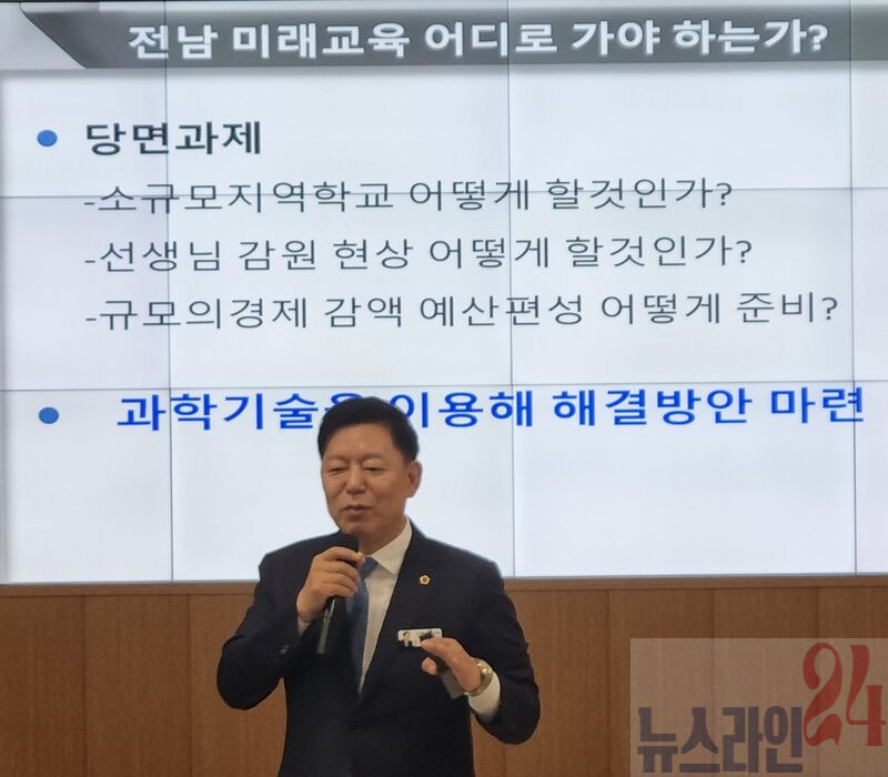 이어 김 위원장은 전남 교육이 직면한 소규모 학교 운영, 교원 감축, 예산 부족 등 구조적 한계를 진단하며, 이에 대한 대안으로 ‘2030 미래 교실’ 비전을 제시했다.
