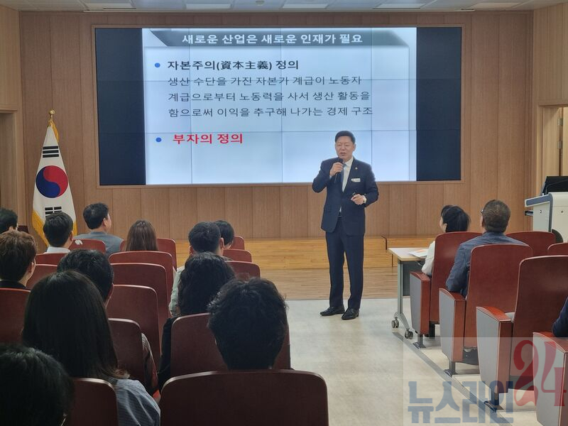 김정희 전라남도의회 교육위원장은 이번 강연에서 원시사회부터 현대에 이르기까지 산업의 변천, 경영 구조의 변화, 그리고 교육 패러다임의 진화를 다양한 통계와 실제 사례를 통해 체계적으로 설명했다.