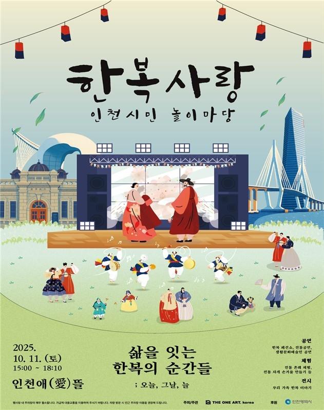 인천광역시(시장 유정복)는 10월 15일 인천시민의 날과 10월 21일 한복의 날을 맞아 오는 10월 11일 시청 인천애(愛)뜰에서 `2025년 한복사랑 인천시민 놀이마당`을 개최한다고 밝혔다.