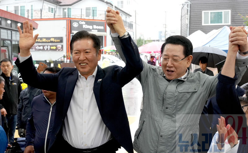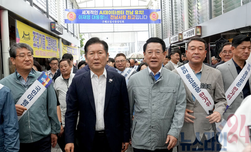 김영록 전남도지사 정청래 더불어민주당 대표와 구례5일장 방문