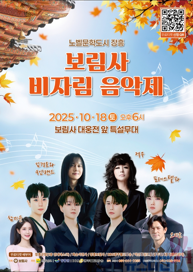 장흥군은 오는 10월 18일 보림사에서 ‘노벨문학도시 장흥, 보림사 비자림 음악제’를 개최한다고 전했다.