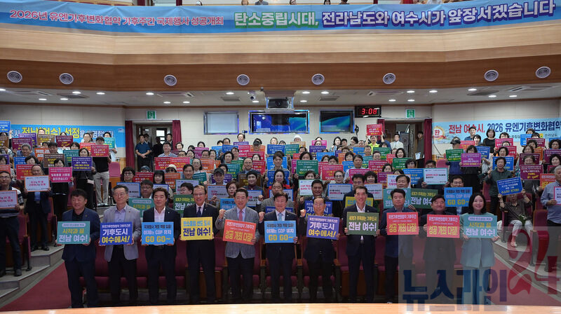 여수시(시장 정기명)는 지난 14일 진남문예회관에서 ‘2026년 유엔기후변화협약(UNFCCC) 기후주간(Climate Week)’ 국내 개최 후보지 선정을 기념하는 행사를 열고 유치를 위한 의지를 다졌다.