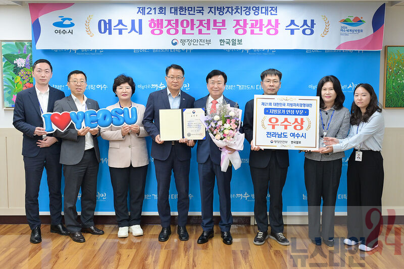 여수시(시장 정기명)가 행정안전부와 한국일보가 공동으로 주최한 ‘제21회 대한민국 지방자치경영대전’에서 ‘지방물가 안정 분야’ 우수기관으로 선정돼 행정안전부장관 표창을 수상했다.