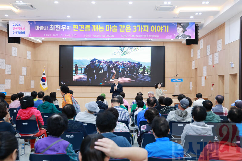 화순군(군수 구복규)은 지난 15일 화순군청 4층 대회의실에서 '2025 군민행복 아카데미 제8회 강연을 성황리에 개최했다고 밝혔다.