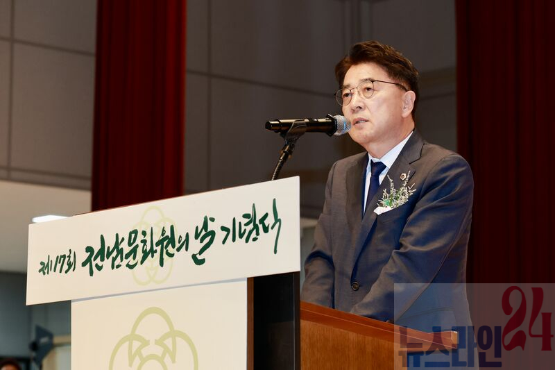 이날 기념식에는 김영록 지사와 22개 시군 문화원 회원, 도민 등 600여 명이 참석한 가운데 식전공연에 이어 개식선언, 문화비전 선언문 낭독, 유공자 시상, 기념촬영 순으로 진행됐다.
