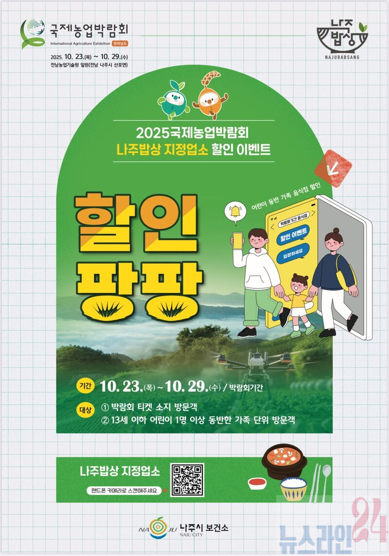 할인 대상은 박람회 입장권 소지자 또는 13세 이하 어린이 동반 가족이며 관련 정보는 나주시청 누리집과 음식점 입구 포스터를 통해 확인할 수 있다.
