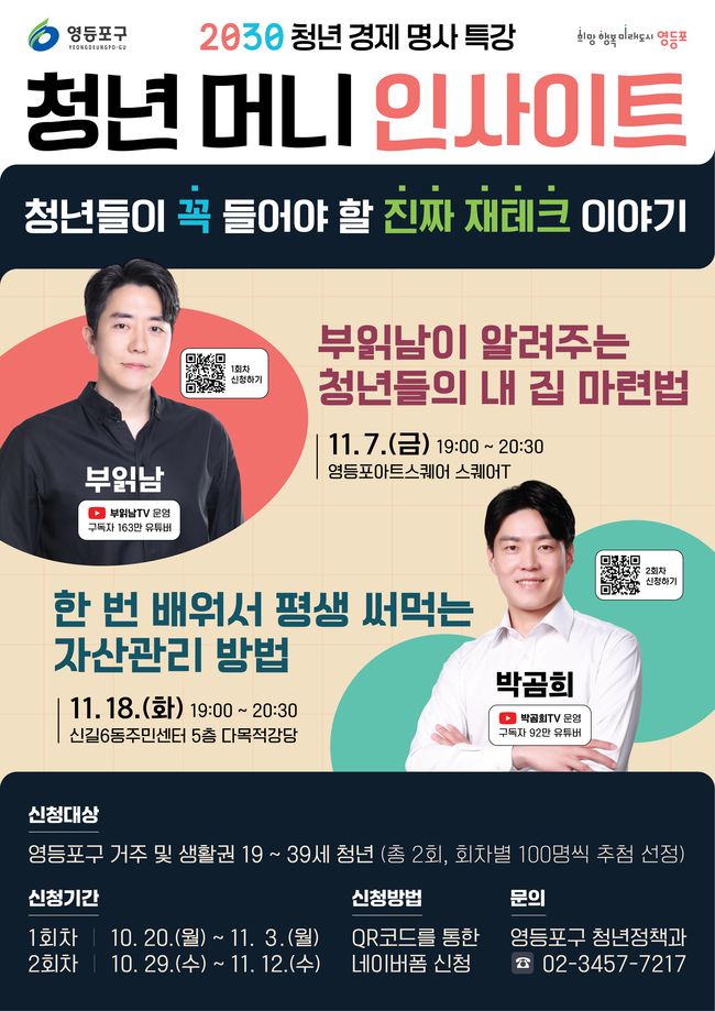 영등포구가 청년들의 경제 이해와 자산 관리 역량 강화를 위해 경제 특강 ‘청년 머니 인사이트’ 참가자를 모집한다.