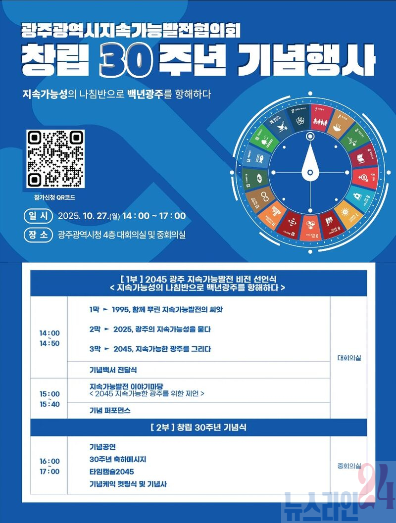 정현윤 기후환경국장은 “광주지속가능발전협의회 30주년 기념행사는 광주시가 지속가능한 미래를 향한 의지를 다지는 중요한 자리”라며 “많은 시민들이 관심을 갖고 적극 참여해 주길 바란다”고 말했다.