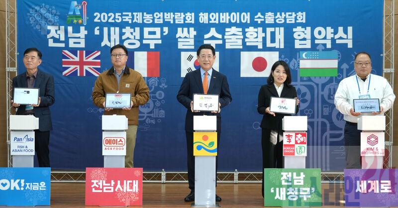 이날 해외바이어 초청 수출상담회에선 전남 대표 브랜드 쌀 ‘새청무’의 세계시장 진출 확대를 위해 영국, 프랑스, 일본, 우즈베키스탄 등 4개국과 2천 톤 규모의 수출협약도 했다.