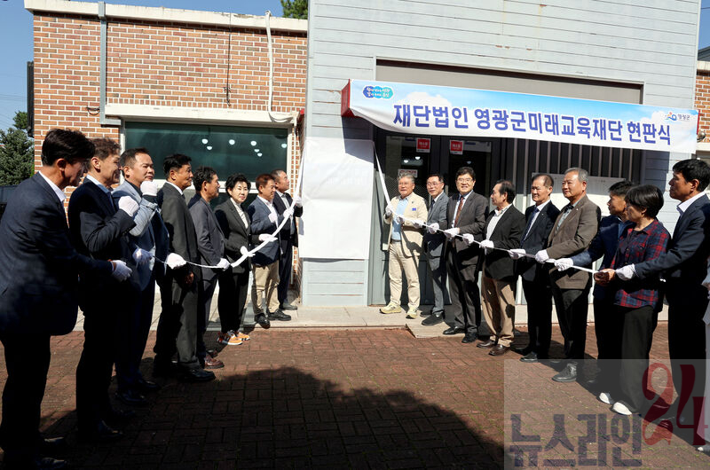 (재)영광군미래교육재단(이사장 장세일)이 지난 10월 22일 임시사무공간에서 현판식을 개최했다.