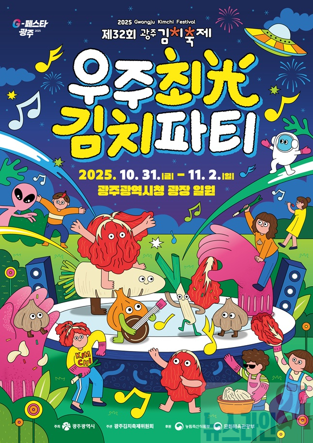 10월31일부터 3일간 광주김치축제…광주시, ‘우주최광(光) 김치파티’ 연다 흑백요리사 안유성 명장의 광주김치 재해석 ‘생중계 요리쇼’ 묵은지 파스타·광주김치찜 등 명인 대표 메뉴 50여종 판매 뉴진스님 ‘K-김치파티’·EDM 사물놀이 전통‧현대 융합 톡톡
