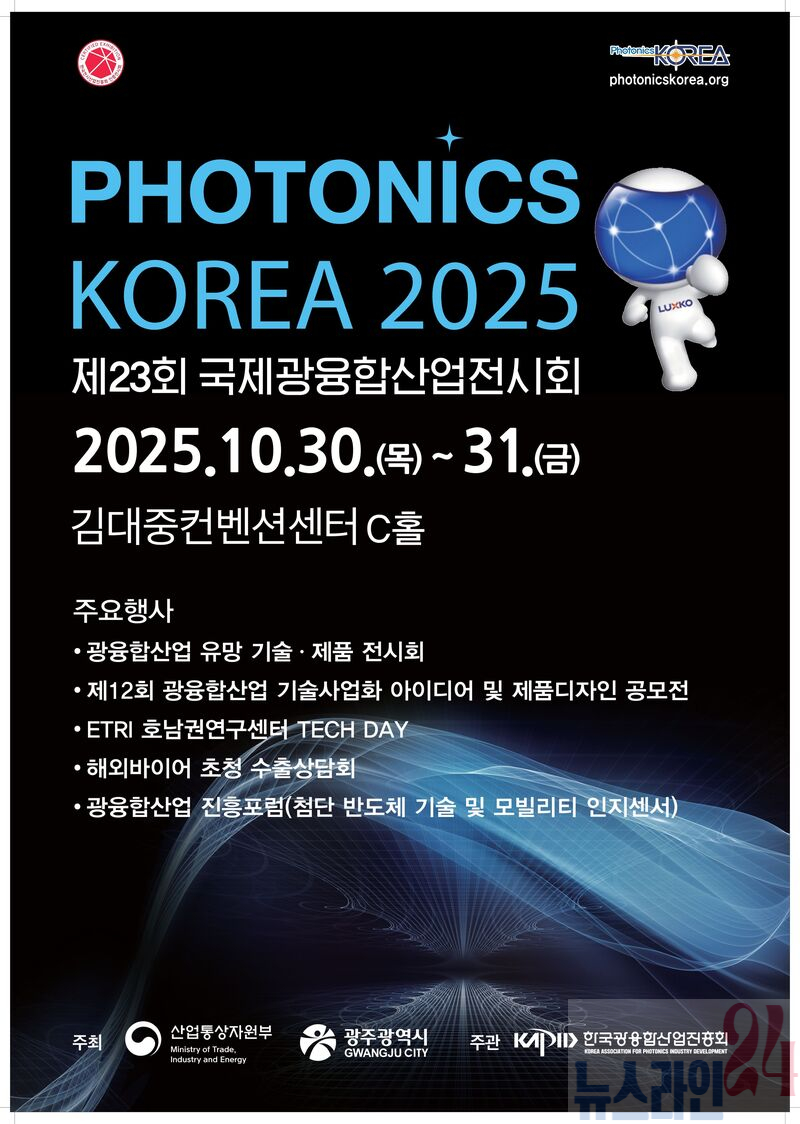 광주광역시(시장 강기정)는 오는 30일부터 31일까지 이틀간 김대중컨벤션센터에서 ‘제23회 국제광융합산업전시회(포토닉스코리아 2025)’를 개최한다.
