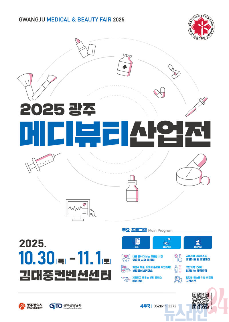 광주광역시(시장 강기정)는 10월30일부터 11월1일까지 사흘간 김대중컨벤션센터에서 ‘2025 광주메디뷰티산업전’을 개최한다. ‘메디뷰티산업전’은 호남 유일의 의료·건강관리(헬스케어)·미용(뷰티)산업 종합 박람회로 광주시가 주최하고 광주관광공사가 주관한다. 올해는 115개 업체가 참여해 293개 부스 규모로 최신 기술과 제품을 전시·홍보한다.
