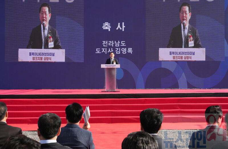 김영록 지사는 축사에서 “그동안 많은분의 노력과 헌신으로 사고 없이 이 시점까지 올 수 있었음에 감사드린다”며 “앞으로 LNG허브터미널 공사가 안전하고 성공적으로 완수돼 여수·광양국가산단의 경쟁력을 높이고 지역경제를 활성화하는 한편, 전남이 글로벌 에너지 허브로 도약하는 계기가 되길 바란다”고 말했다.