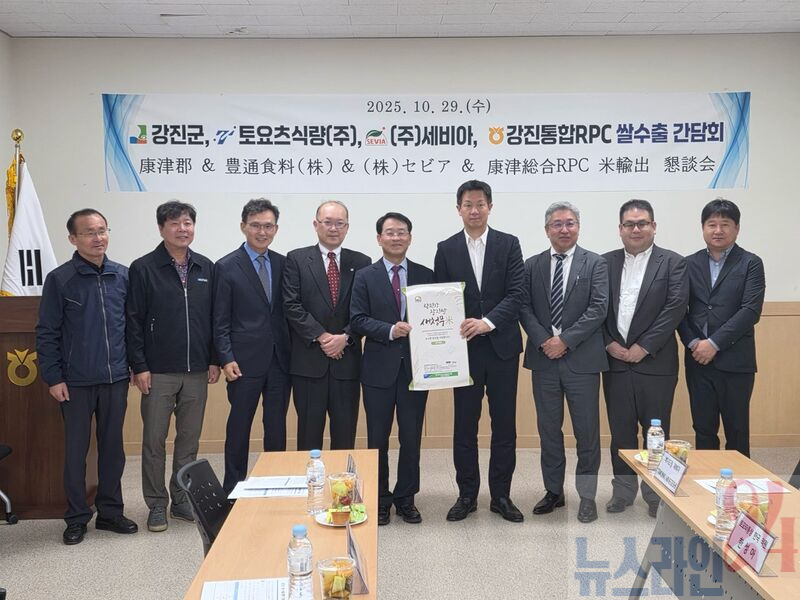 강진군이 일본 농산물 수입·가공 기업을 초청해 강진쌀의 해외 수출 확대를 위한 본격적인 움직임에 나섰다. 지난달 29일 강진군 통합RPC(강진군농협쌀조합공동사업법인)에서 ㈜토요츠 식량, ㈜세비아 관계자들과 강진군 통합RPC 임직원 등이 참석한 가운데 ‘강진쌀 수출 협력 간담회’가 열렸다.