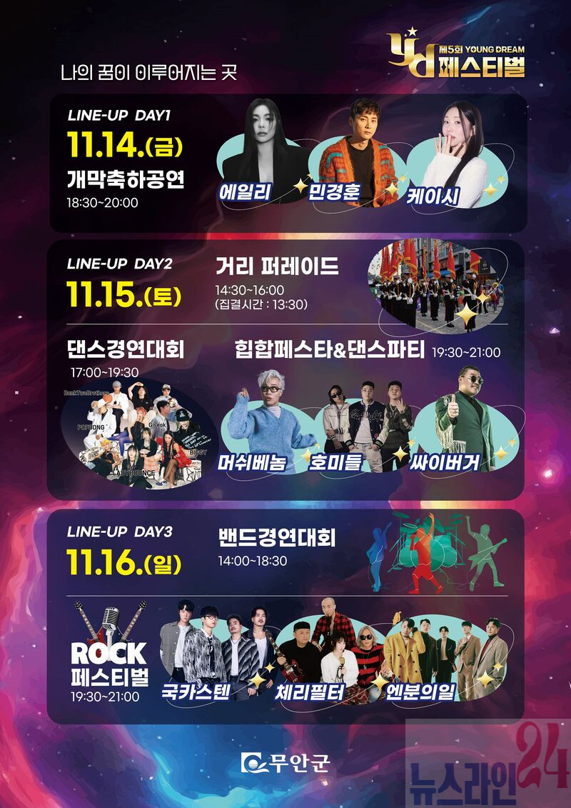 김산 군수는 “YD페스티벌은 청년이 중심이 되어 직접 만들어가는 무안의 대표 축제”라며, “젊은 세대가 마음껏 에너지를 발산하고, 각자의 꿈을 향해 나아갈 용기를 얻는 계기가 되길 바란다”고 전했다.