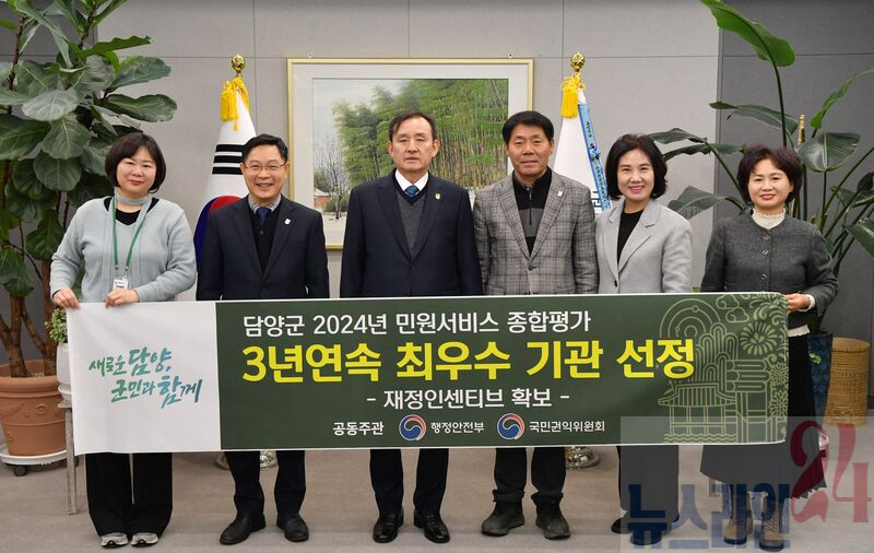 담양군(군수 이병노)은 행정안전부와 국민권익위원회가 공동으로 주관하는 ‘2024년 민원서비스 종합평가’에서 3년 연속 최우수 기관에 선정되는 영예를 안았다.