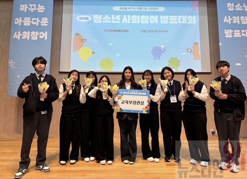 광주 우산중학교(이하 우산중) 학생들이 지난 1일 서울 민주화운동기념관에서 열린 ‘제16회 청소년 사회참여 발표대회’에서 전국 2위에게 주어지는 부총리 겸 교육부장관상을 수상했다.