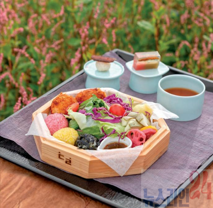 ◾ K-디저트(미술관아래): 한지 작가인 김미희 대표가 갓을 담는 '갓함'을 모티브로 구성한 한지 갓함 디저트 박스를 선보였다. 이 디저트 박스는 투숙객들을 위한 '웰컴티'로 제공되어, 품격 있는 갓함 안에 담긴 5종의 아름다운 디저트가 향기로운 국화차와 함께 체류형 프로그램의 시작을 알리는 정갈한 환대를 선사했다.