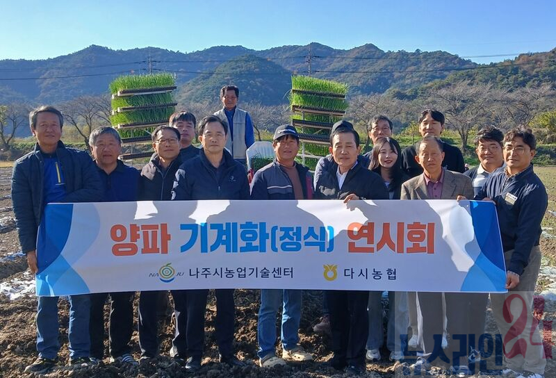 전라남도 나주시(시장 윤병태)는 다시농협과 협력해 ‘양파 기계화 정식 연시회’를 개최하고 고령화와 인건비 상승 등으로 어려움을 겪는 양파 재배 농가의 작업 부담을 줄이고 재배 효율을 높이기 위한 기계화 기술 보급에 본격 나섰다고 17일 밝혔다.